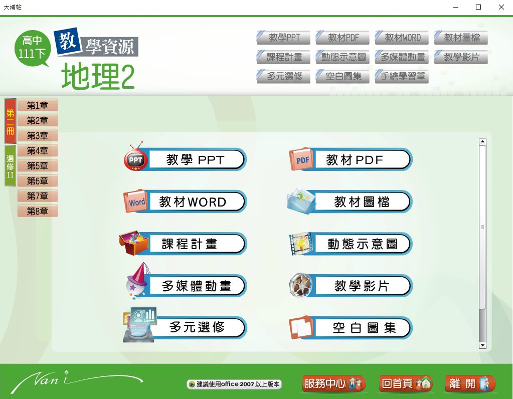 111學年下學期 高中大補帖 南一版 地理科(二、選修II) 教學光碟