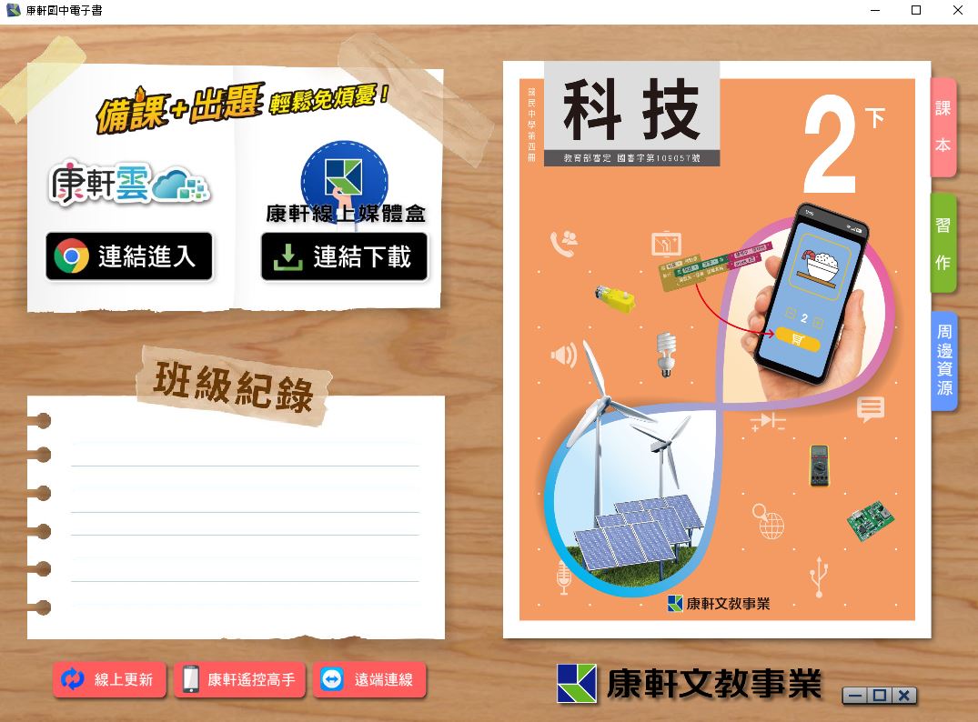 111學年下學期 國中 康軒版 生活科技電子書 2年級(含課本、習作含解答、教學資源)教學光碟
