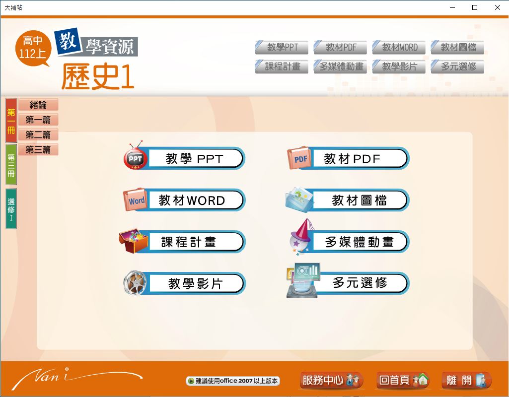 112學年上學期 高中大補帖 南一版 歷史科(一、三、選修I) 教學光碟