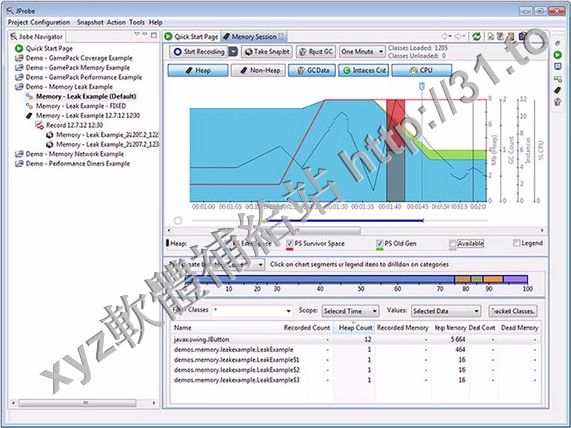 檢查JAVA程式中的性能瓶頸和記憶體漏洞,測試代碼。主要特性: