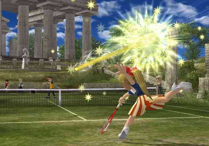 ,在具備世界各國風格的 11 個網球場中;以簡單的操作進行激烈的網球對戰,並可支