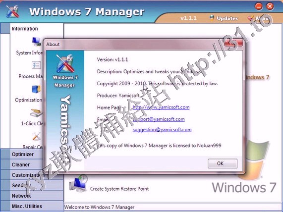• Yamicsoft Windows 7 Manager v1.2.8 英文正式版(優化和設置Windows 7軟體)