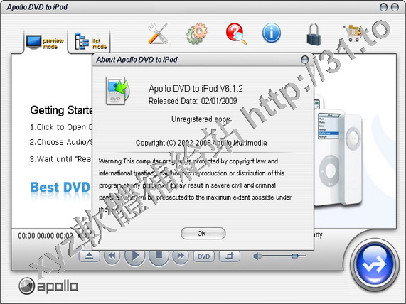 • Apollo DVD To iPod v4.1 英文正式版(DVD影片轉換為符合iPod的MPEG4視頻格式軟體)
